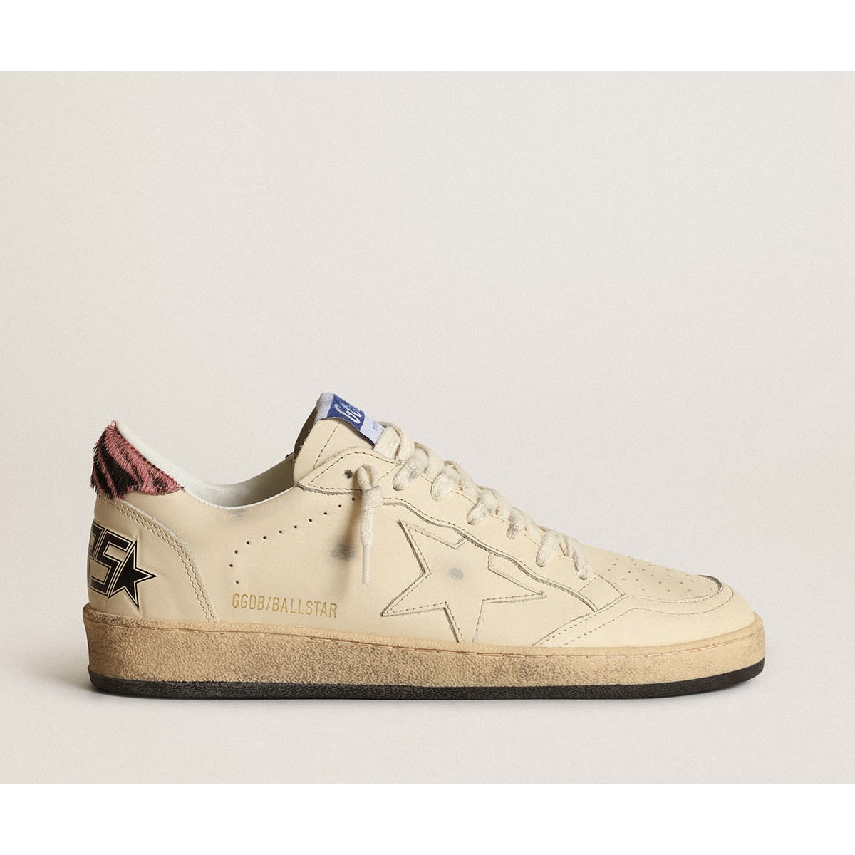 Golden Goose Ball Star Ltd Turnschuhe in Elfenbeinleder mit rosa und schwarzem Zebra-Print Pony Skin Heel Tab GWF00117.f003425.15384