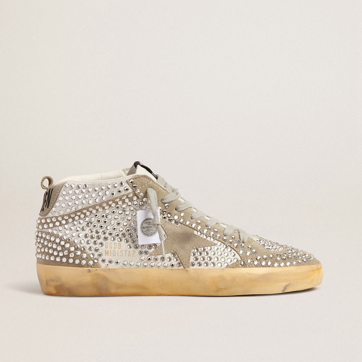 Golden Goose Mid Star in White und Dove-Grau-Wildleder mit Swarovski-Kristallen GWF00122.F004088.11376