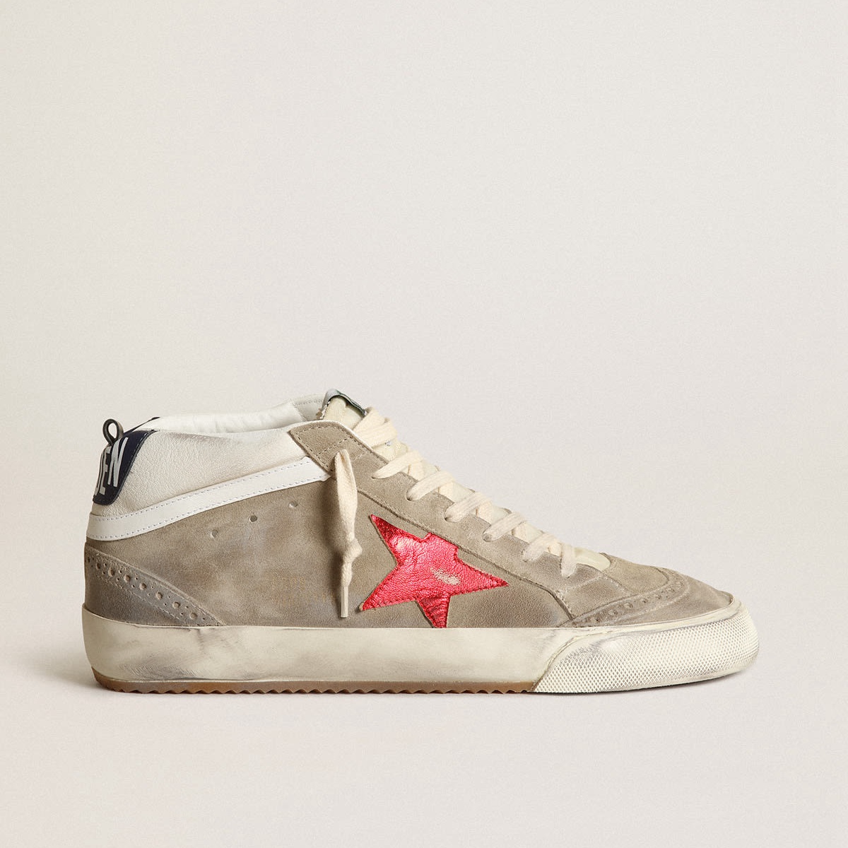 Golden Goose Mid Star Turnschuhe im Tauben-Grau-Wildleder mit rotem metallischem Lederstern und weißem Leder-Blitz GMF00123.f003432.60371