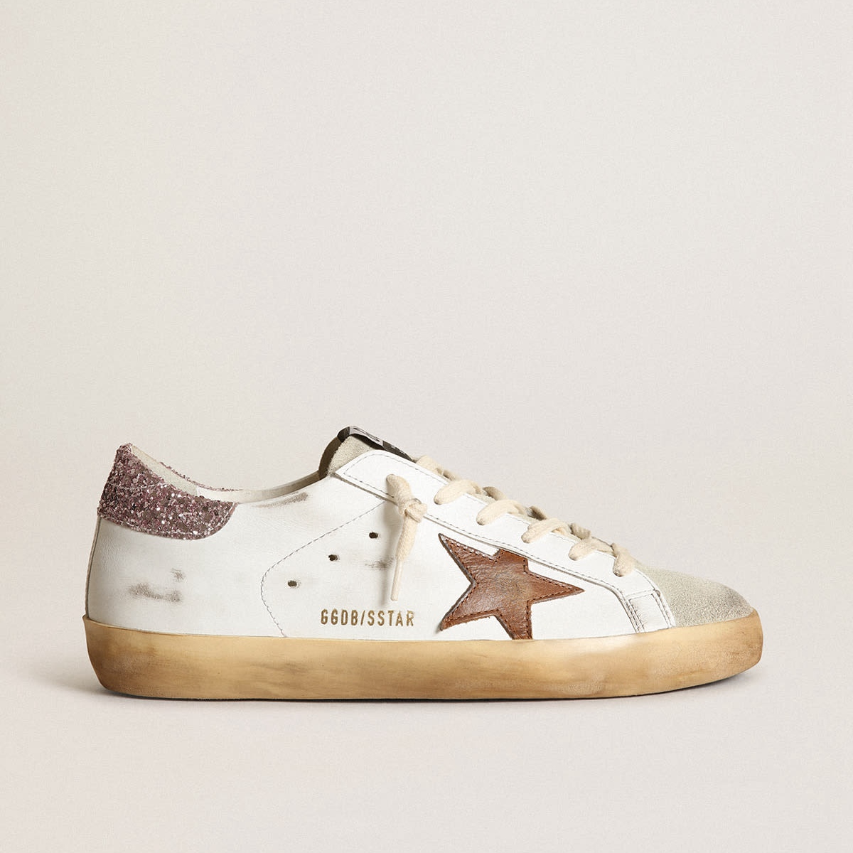 Golden Goose Super-Star mit einem braunen Stern und einem rosa Glitzerabsatz Tab GWF00101.f003396.11237
