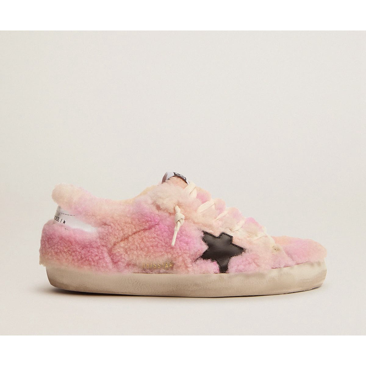 Super-Star-Turnschuhe goldener Gänse mit Oberem und Futter in rosa Krawatten-Dye-Shearling GWF00174.F001826.81229