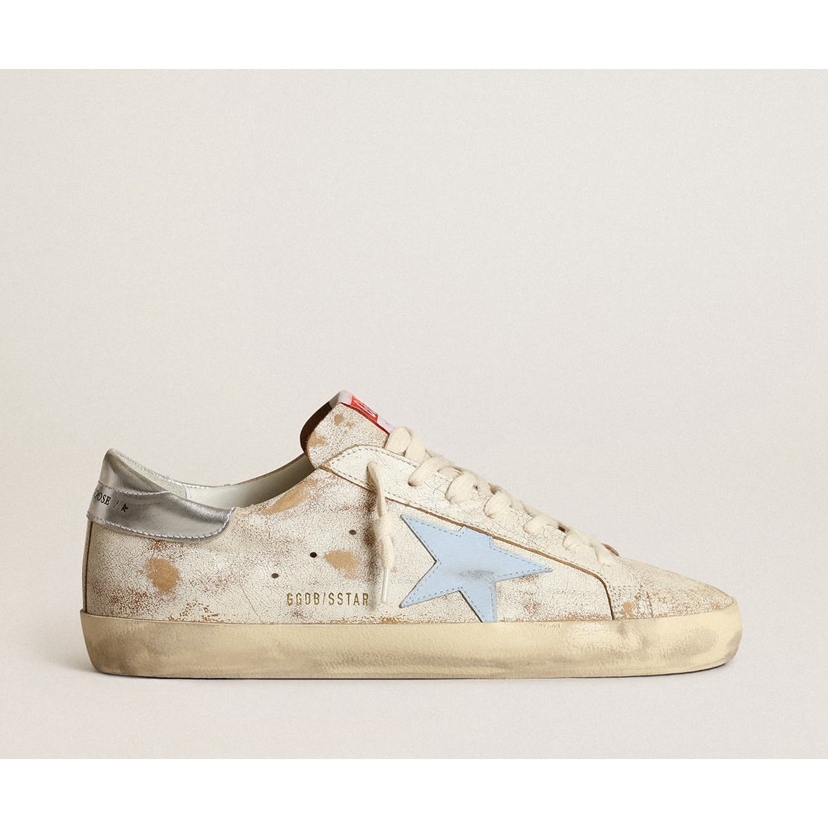 Super-Star-Turnschuhe mit Golden Goose mit Stern in rauchhellblauem Leder und silbernen Absatz GMF00101.f003362.11233
