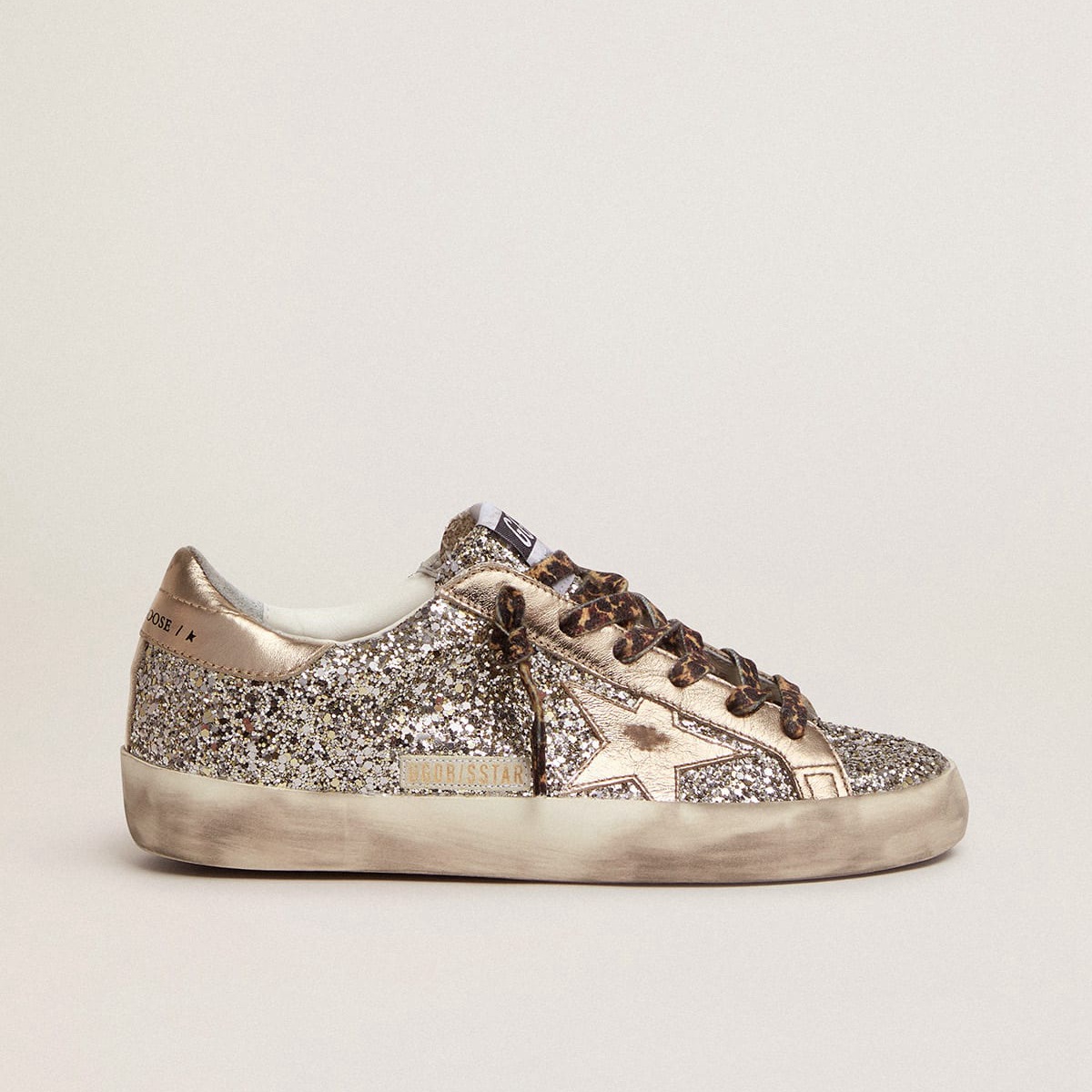 Super-Star-Turnschuhe goldener Gänse im platinfarbenen Glitzer mit Stern- und Fersen-Tab im ton-on-ton-laminierten Leder GWF00101.F002840.65157