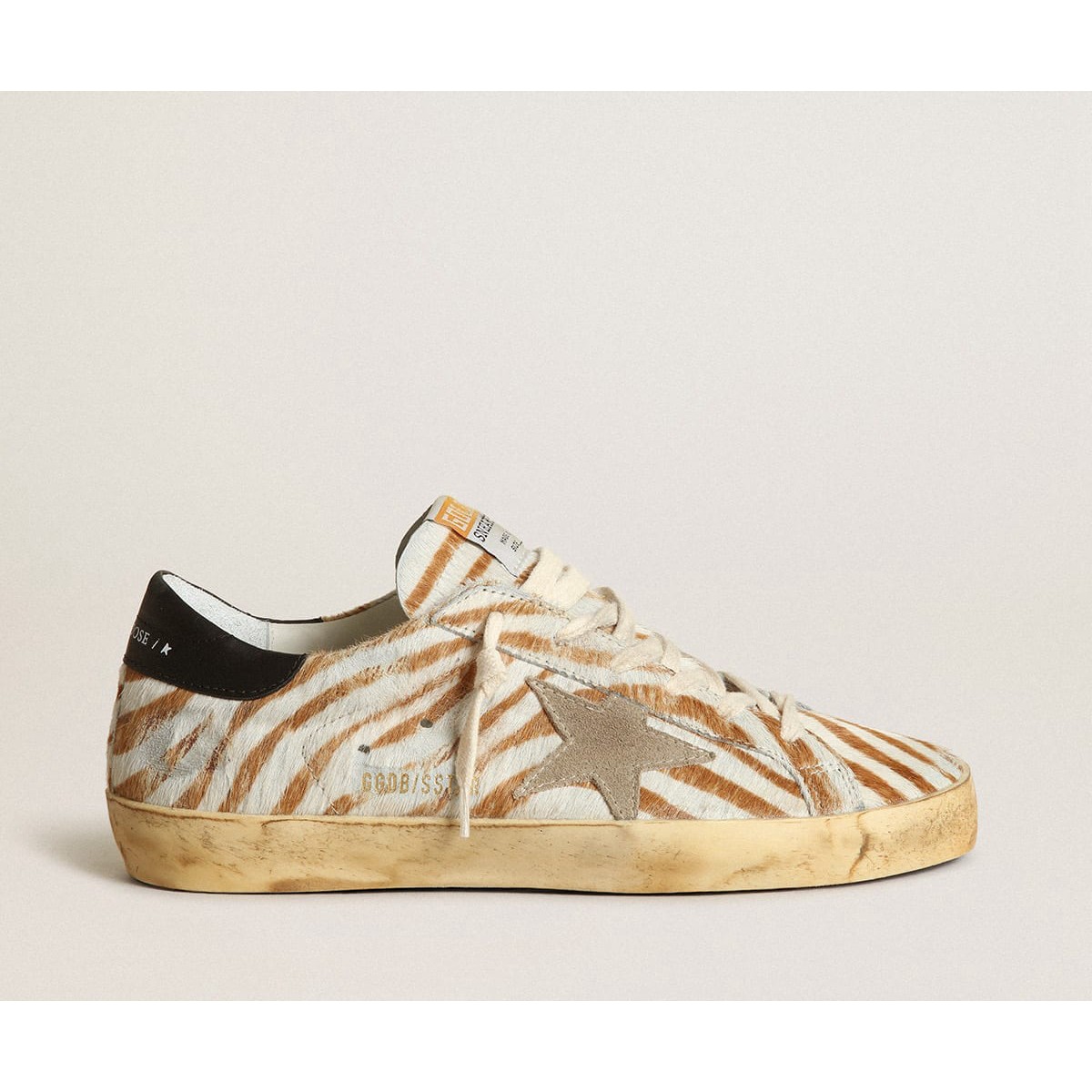 Super-Star-Turnschuhe im Golden Goose im Zebra-Druck Pony Skin mit Dove Grey Star GWF00101.f003412.81823