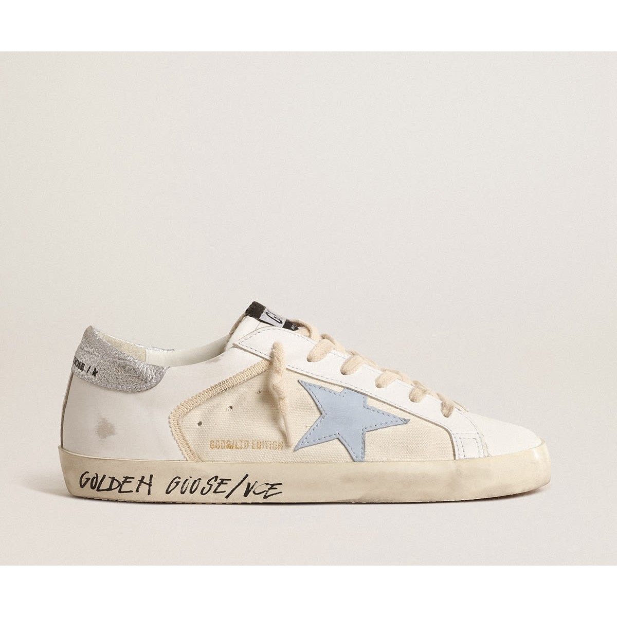 Golden Goose Super-Star Ltd mit hellblauem Stern und silbernen Lederabsatz GWF00104.F004674.82318
