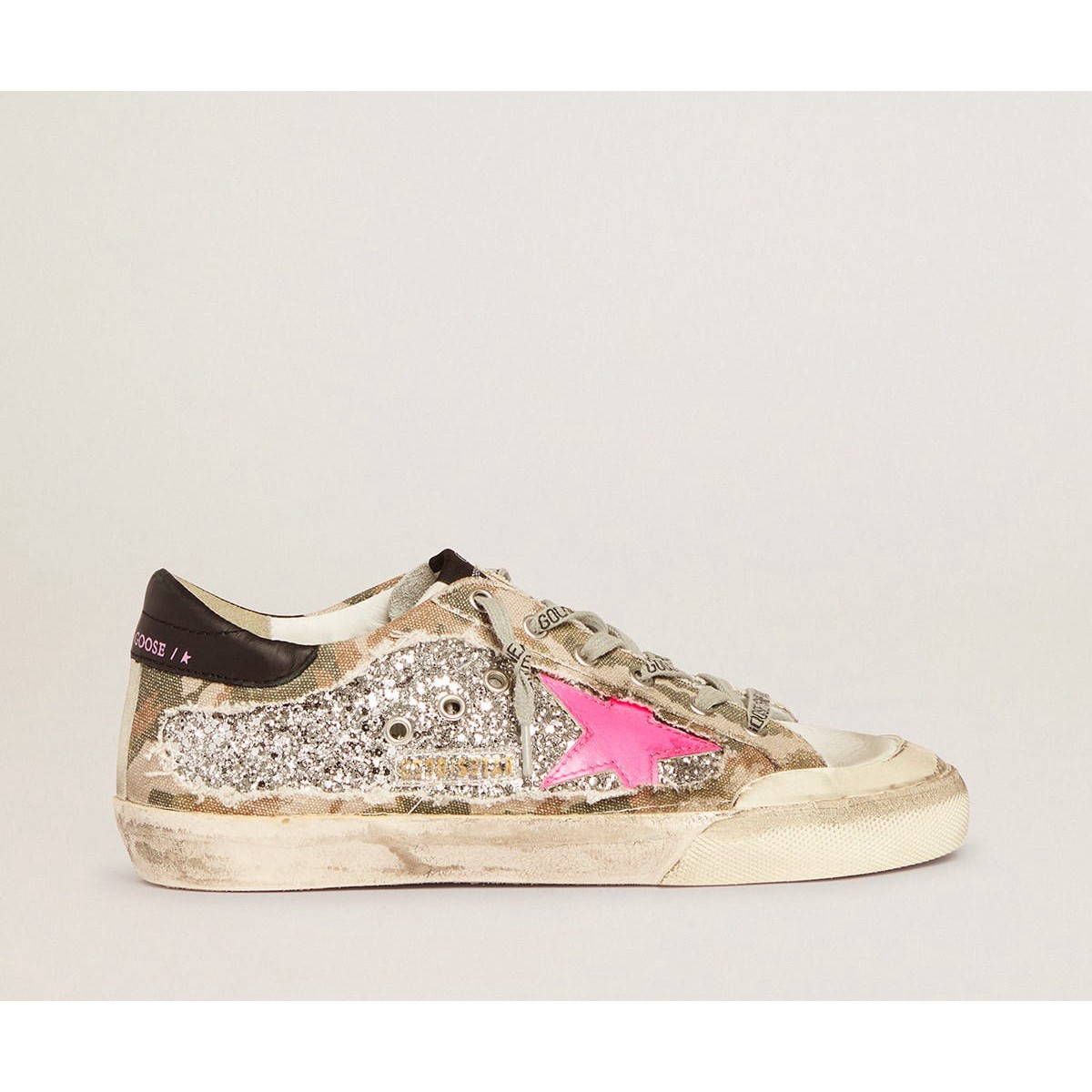 Super-Star-Turnschuhe goldener Gans in Silberglitter und Tarn Canvas GWF00107.f001719.81193