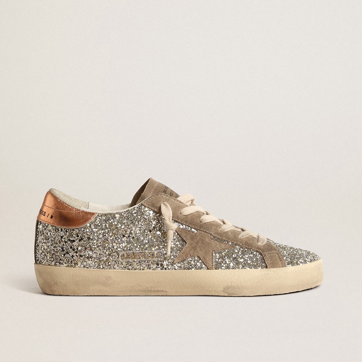 Golden Goose Super-Star mit einem Wildlederstern und Pfirsich-Pink-Glitzer-Fersen-Tab GWF00102.f004489.11471