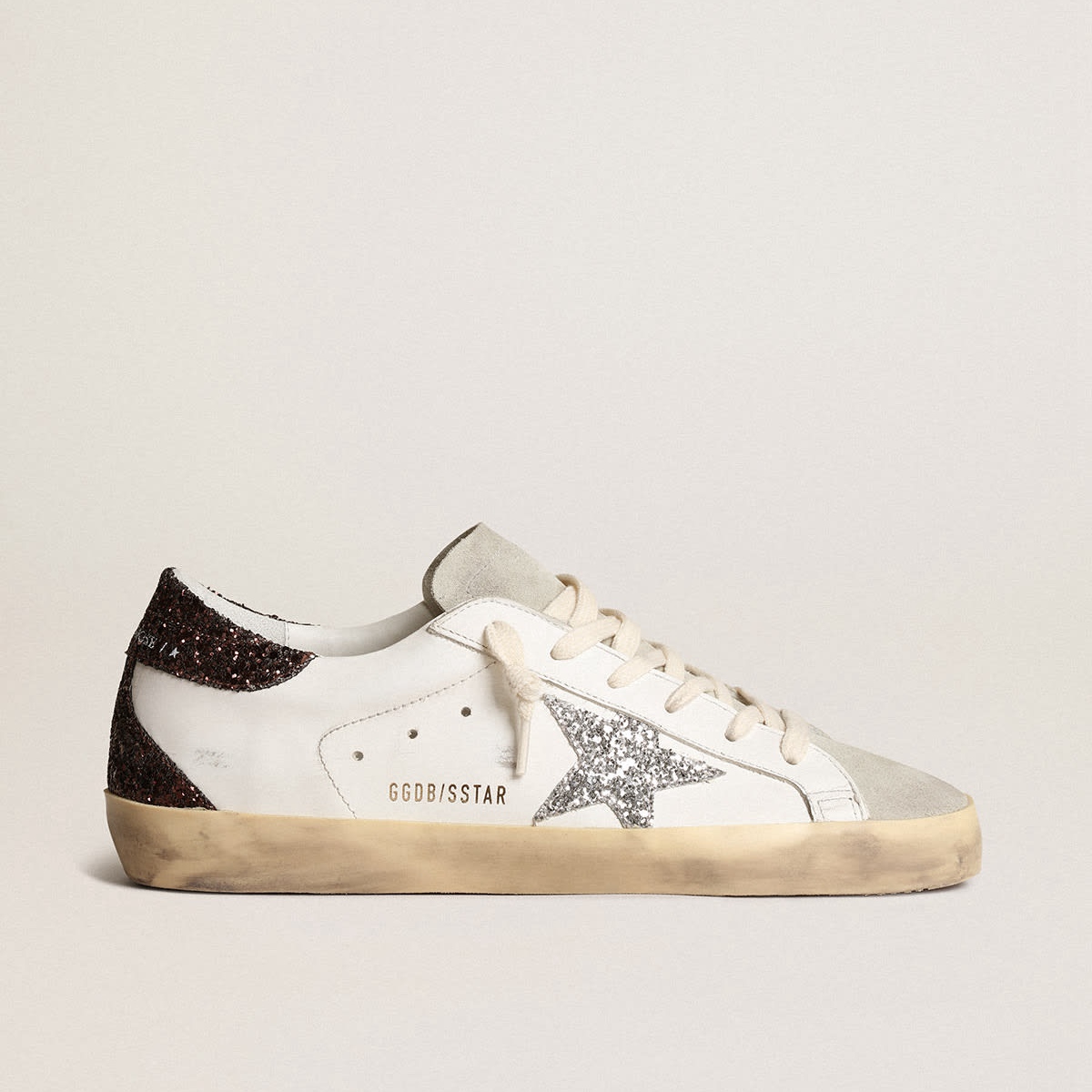 Golden Goose Super-Star mit Burgunderglitterstar und Silberabsatz Tab GWF00102.F004057.11372