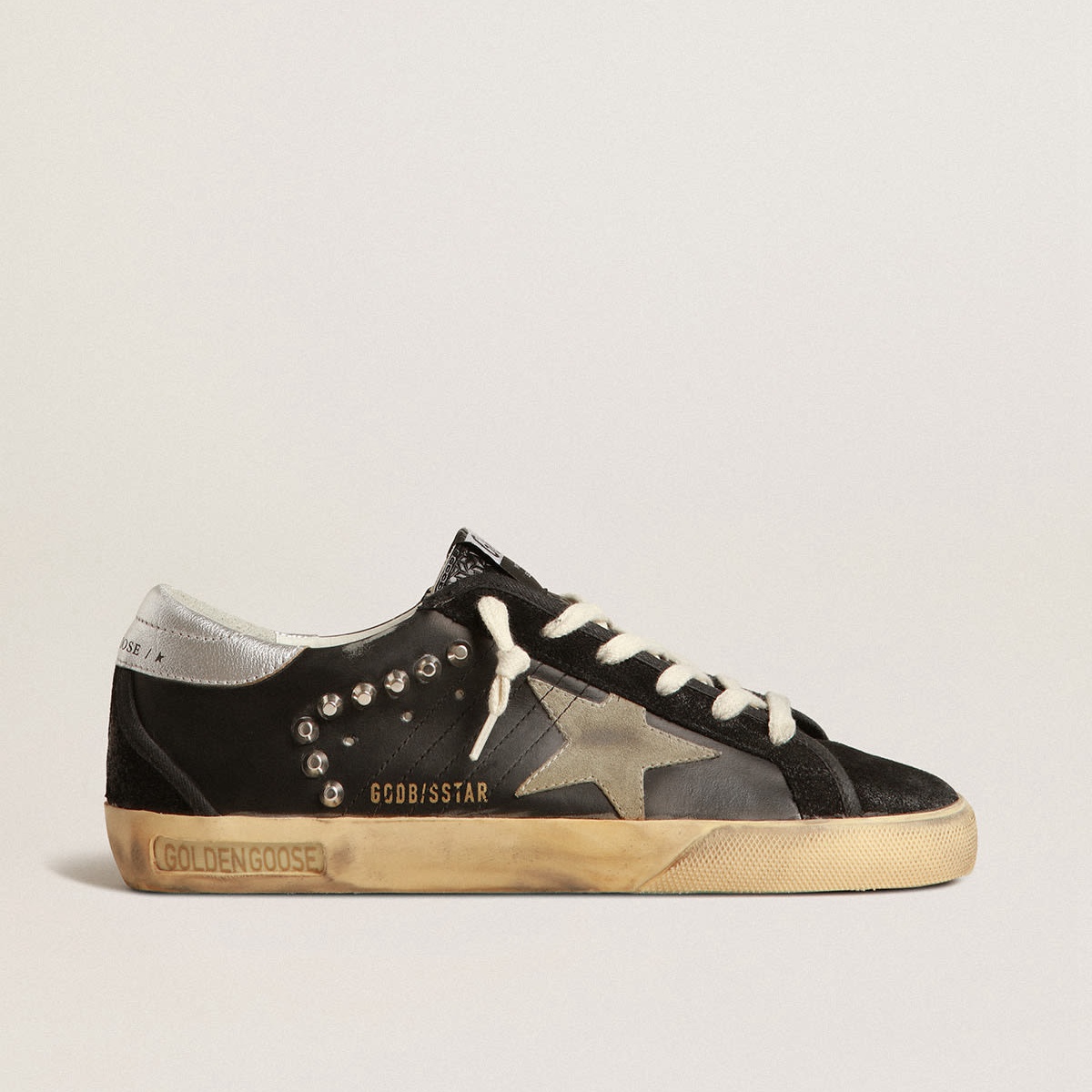 Golden Goose Super-Star in schwarzem Leder und Wildleder mit silbernen Stollen GWF00470.f004020.90367